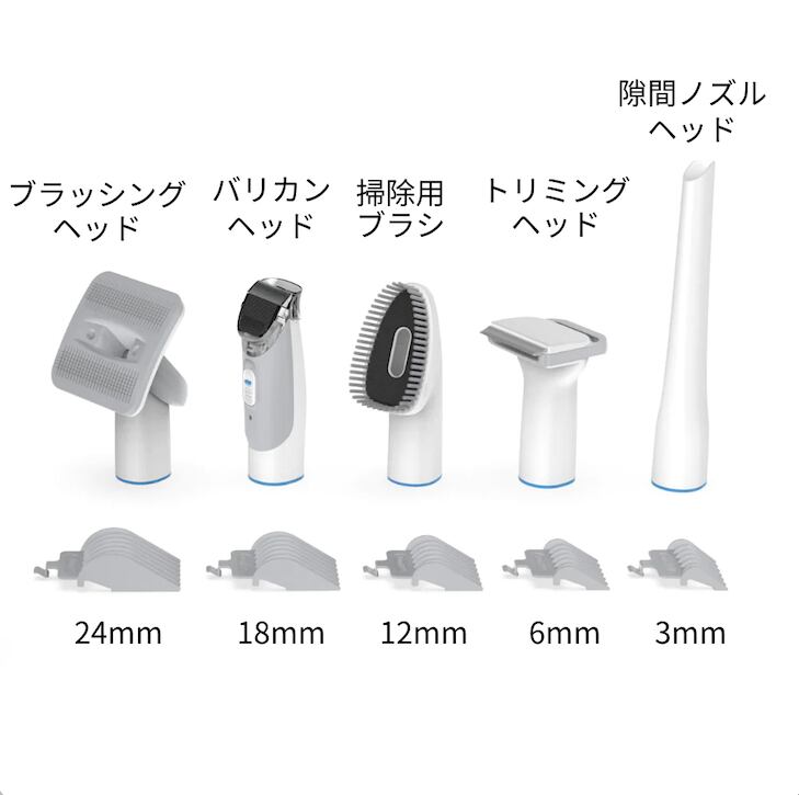 ブラッシングからバリカンまでペットトリミングがこれ1台で可能!5つのアタッチメントを交換でき、適当なヘッドを選ぶことができます。